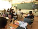 6年生の教室に入っていくと、みんなでタブレットで都道府県についてのクイズをやって...