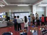 3年生の授業は音楽です。「パフ」をリコーダーでふいています。一つのグループの演奏...
