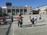 今日の朝の活動は朝遊びです。 子どもたちがクラス遊びを始めました。校庭を子どもた...