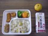 <献立> 栗ごはん 麦茶 いかのカリント揚げ 温野菜(ブロッコリー、人参) 切干...