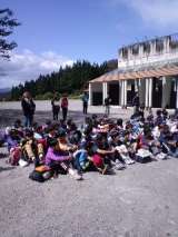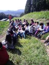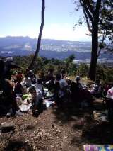 山の中腹で休憩。 全員無事。 元気いっぱいです!