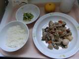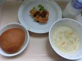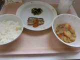 <献立> ○ごはん ○牛乳 ○鶏肉と里芋のうま煮 ○きゅうりともやしのごま風味 ...