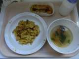 <献立> ○洋風炊き込みごはん ○牛乳 ○スペイン風オムレツ ○もやしのスープ ...