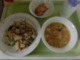 <献立> ○あんかけチャーハン ○牛乳 ○中華サラダ ○わかめスープ <主な食...