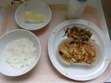 <献立> ○ごはん ○牛乳 ○魚のチャンチャン焼き ○くきわかめのきんぴら ○く...