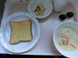 <献立> ○ツナトースト ○牛乳 ○ポテトクリーム煮 ○野菜スープ <主な食材...