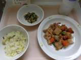 <献立> ○ごはん ○牛乳 ○家常豆腐 ○野菜の中華かけ ○キャロットゼリー ...