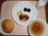 〈献立〉 ○ショートニングパン ○牛乳 ○コロッケ ○ゆでキャベツ ○オニオンス...