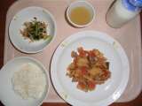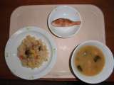 <献立> ○キムチチャーハン ○牛乳 ○にらたまスープ ○菊花みかん <主な食...