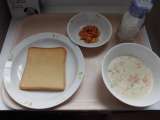 〈献立〉 ○バタートースト ○牛乳 ○クリームシチュー ○にんじんサラダ 〈主...