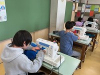 6年生は家庭科です。それぞれのペースで「マイバッグ」作りを進めています。細かい作...