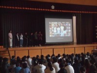 朝の活動は図書委員会の発表です。図書委員会の仕事内容などを紹介しています。図書委...