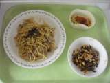 <献立> きのこスパゲッティ 牛乳 大根とひじきのサラダ スイートポテト <主な...
