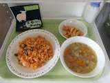 <献立> キャロットライス ジョア 白菜のミルクスープ りんごゼリーポンチ <主...