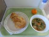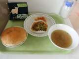 <献立> 丸パン 牛乳 ハムとほうれん草のキッシュ にんじんサラダ オニオンスー...