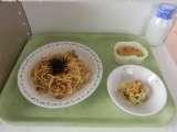 <献立> 和風スパゲッティ 牛乳 野菜のごまサラダ スイートポテト <主な食材の...