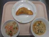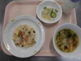<献立> ○チャーハン ○牛乳 ○ワンタンスープ ○大根ときゅうりのごま風味 ...