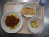 〈献立〉 ○スパゲッティミートソース ○牛乳 ○フレンチサラダ ○かぼちゃパイ ...