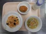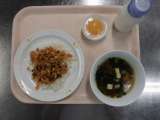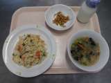 〈献立〉 ○チャーハン ○牛乳 ○大豆とじゃこの甘辛あげ ○白菜と春雨のスープ ...