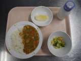 〈献立〉 ○カレーライス ○牛乳 ○ブロッコリーのサラダ ○くだもの 〈主な食...