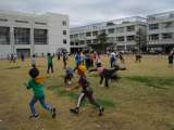 2時間目は、1年生の校庭遊びの時間です。 はじめはクラスごとに、「どろけい」、「...