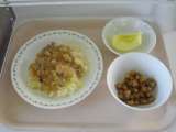 <献立> あんかけチャーハン 牛乳 大豆とじゃこの甘辛揚げ りんご <主な食材の...
