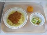 <献立> スパゲッティミートソース 牛乳 白菜サラダ みかん <主な食材の産地>...