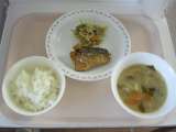 <献立> ごはん 牛乳 さばのカレー揚げ 水菜のおひたし みそ汁 <主な食材の産...