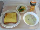 <献立> フレンチトースト みかんオレンジミックスジュース 白菜のクリームスープ...