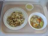 <献立> 雑穀ごはん 牛乳 四川豆腐 中華ソテー <主な食材の産地> にんじん・...