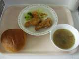 <献立> パンプキンパン 牛乳 フライドチキン 花野菜のサラダ オニオンスープ ...