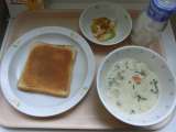 <献立> ○きな粉バタートースト ○牛乳 ○かぶのシチュー ○野菜のイタリアンド...