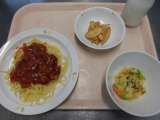 〈献立〉 ○スパゲッティ地中海ソース ○牛乳 ○フライドポテト ○野菜のイタリア...
