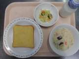 <献立> ○オレンジフレンチトースト ○牛乳 ○さつまいもシチュー ○フレンチサ...