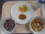 〈献立〉 ○黒米ごはん ○牛乳 ○洋風おでん ○大豆とじゃこの甘辛あげ ○即席漬...