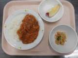 <献立> ○ごはん ○魚のピリ辛ソースかけ ○大根とひじきのサラダ ○じゃがいも...