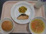 〈献立〉 ○セサミパン ○牛乳 ○魚のマリナード焼き ○ベジタブルソテー ○ベー...