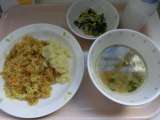 <献立> ○チキンライス ○牛乳 ○チーズ入り卵焼き ○白菜スープ <主な食材...