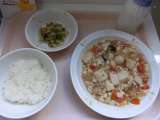 <給食> ○ごはん ○牛乳 ○豆腐の五目炒め ○白菜の中華サラダ <主な食材の...