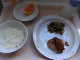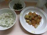 <献立> ○じゃこと青のりのごはん ○牛乳 ○揚げ煮 ○ほうれんそうの乾物和え ...