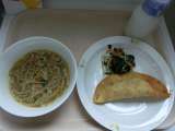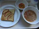 <給食> ○ハムチーズトースト ○牛乳 ○白いんげんの田舎風スープ ○ごぼうチッ...