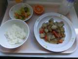 <献立> ○ハッシュドポークライス ○牛乳 ○かぶの甘酢かけ ○フルーツカクテル...