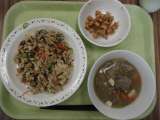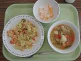 <献立> ○パエリア ○白いんげん豆の田舎風スープ ○ピーチヨーグルト <主な...