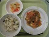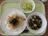 <献立> ○高菜ごはん ○生揚げそぼろあんかけ ○野菜のからしじょうゆかけ <...