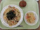 <献立> ○和風スパゲッティ ○じゃがいものハニーサラダ ○おからマフィン <...