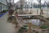 本校の主事さんが、ビオトープの池の周りに杭を打ち、ロープを張りました。子どもたち...