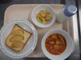 〈献立〉 ○アップルシナモントースト ○牛乳 ○ビーンズシチュー ○野菜のレモン...