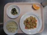 〈献立〉 オリ・パラ給食〜スペイン ○パエリア ○コーヒー牛乳 ○ソパ・デ・アホ...