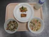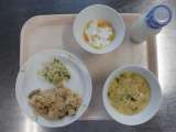 〈献立〉 ○中華おこわ ○牛乳 ○中華風コーンスープ ○きゅうりと大根のごま風味...