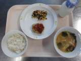 〈献立〉 ○雑穀ごはん ○牛乳 ○肉じゃがうま煮 ○ほうれんそうの乾物あえ ○く...